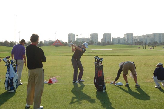 Fellow Team Austria staffer Bernd Wiesberger with his coach looking on