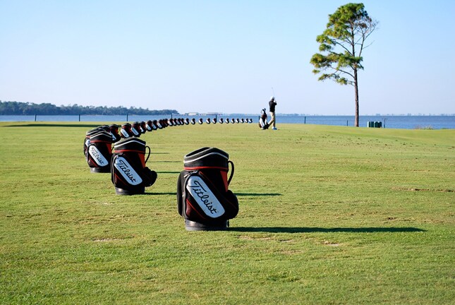 It's a beautiful day at Sea Island, especially with bags of Titleist balls on the driving range.