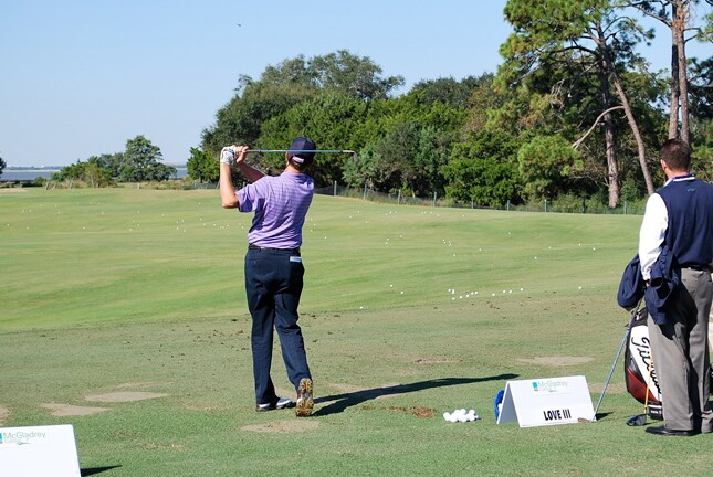 Davis gets some practice in after a week of assistant captainship at the Ryder Cup.