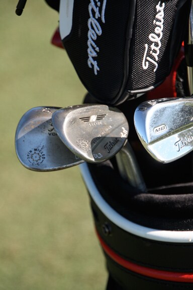 Here's a closer look at his Vokey wedges, stamped with "DL3."