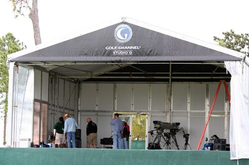 Our friends from the Golf Channel setting up Studio G for the Transitions Championship coverage.