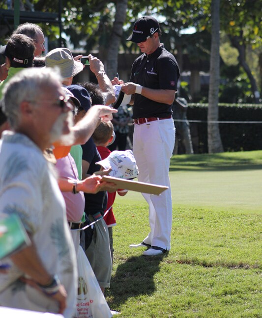 Titleist Brand Ambassador Zach Johnson signs some autographs for his Hawaiian fans.