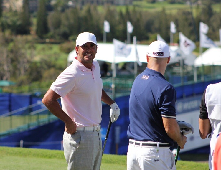 Pro V1 loyalist Scott Piercy plays up his first tee-jitters for the camera.
