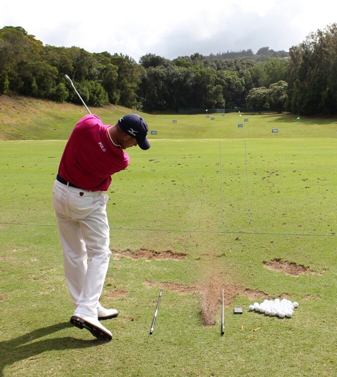 Defending champ Jonathan Byrd works through a pile of Pro V1x golf balls.