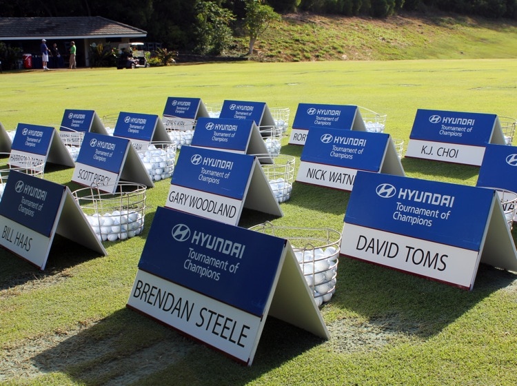 Buckets of Pro V1 and Pro V1x golf balls, ready for action. Of the 28 players competing this week at Kapalua, 23 are Titleist golf ball players.