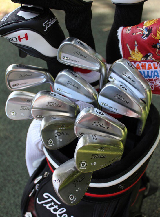 Graham's setup: Titleist 910D3 8.5º driver, 910F 13.5º fairway metal, 910H 19º hybrid, CB 4-5/MB 6-9 (712 Series) irons, Vokey Design SM4 wedges (52º, 56º and 60º) and Scotty Cameron Newport 2.5 putter (with a brand new headcover)...