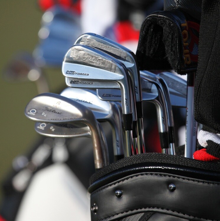 A peek into Chris' bag, featuring his new MB (712 Series) irons and Vokey SM4 wedges (48º, 54º, 60º).