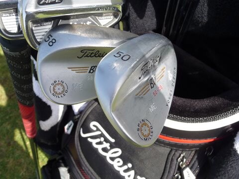 Martin has the second generation Spin Milled wedges with the new conforming grooves in the bag, including the 50-08 and 58-12 seen here. Not shown is his 54-11.