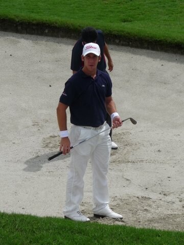 Titleist Brand Ambassador Roman Wattel pauses for a quick photo while getting some bunker practice in.