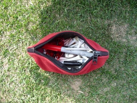 A pencil case full of sharpies, more tee's and a pitch mark repairer.