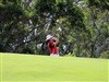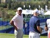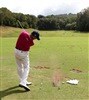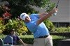Scott Stallings practice his mid-range stroke.