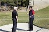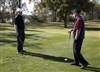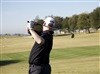 Not far away, Jim's testing his new SM4 wedges off the turf.