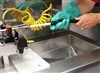 Inside the Titleist Tour Van, Scotty Cameron Tour Rep Larry Silveira trims the shaft for a new putter for Titleist Brand Ambassador Do-Hoon Kim.
