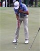 Over at the putting green, Titleist Brand Ambassador Adam Scott gets to work with his Scotty Cameron Kombi-S long putter prototype.