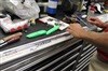After cutting the shaft, Larry sands down the sharp edges.