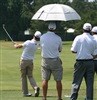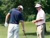 Titleist Tour Rep Jim Curran (right) checks in with Titleist Brand Ambassador Aaron Price.